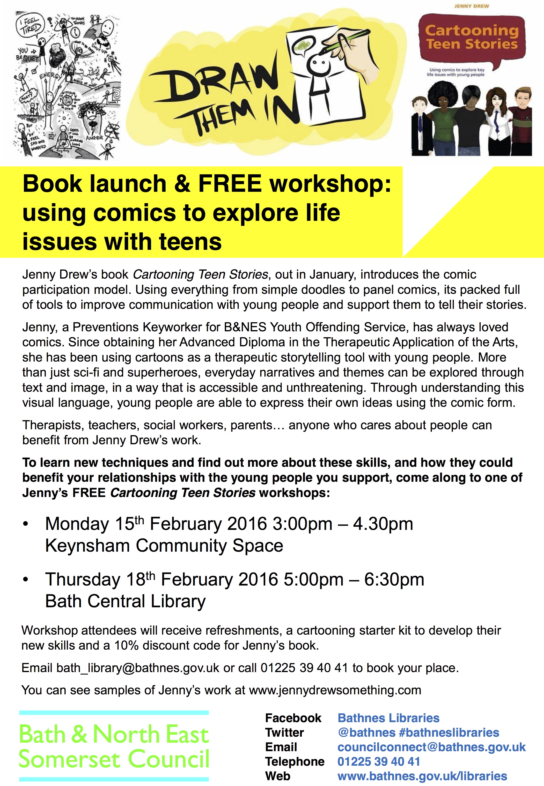 There will be events to celebrate coming in February, where I will be presenting a fun workshop about how to use comics to tell stories. Have a look at the poster for details of how to book. I hope to see you there π