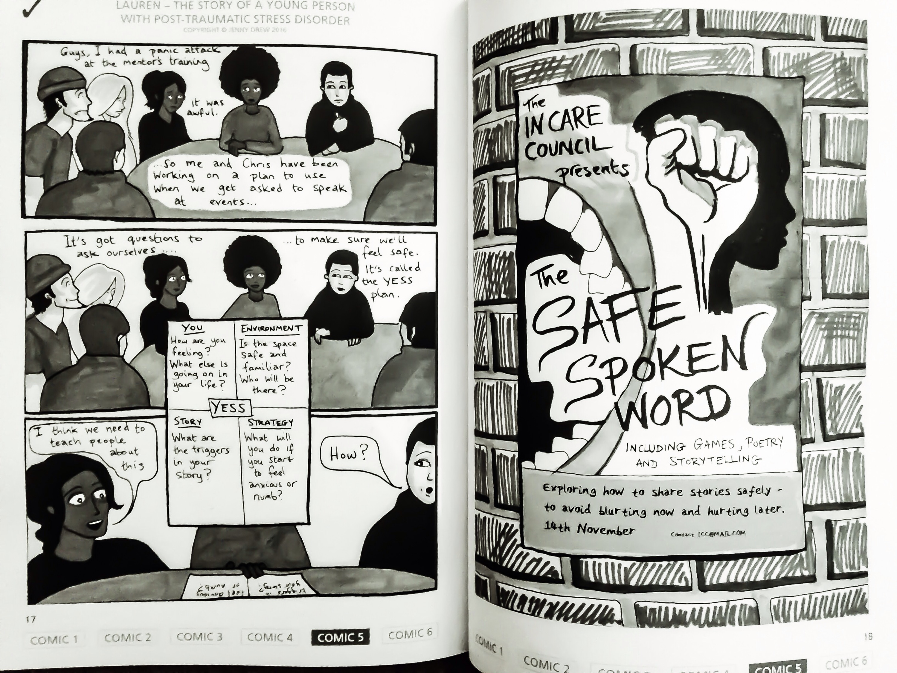 How to keep yourself emotionally safe when sharing personal stories – something I cover in my book and that I’ll be talking about in more detail at the launch. I’ve sometimes been caught off guard by how I’ve been affected by sharing something personal in public, during training or a performance, either to tell a story, share an example, or to be funny. I might have thought I was fine with it at the time, only to go home and feel confused and ‘messy’, for reasons I can’t put my finger on. Through working with young people who’ve been in care, I found that many of them want to help others in difficult situations, and so they are invited to talk about their experiences at public events. The story of Lauren in my book is an example of how this can be triggering, i.e to cause emotional flashbacks. With the advice of young people, I devised the ‘YESS’ plan (You, your Environment, your Story, and your Strategy) a tool to help you or those you work with prepare, and come up with a strategy if something being talked about touches a nerve. It can also be used as a group activity at the beginning of workshops, in the place of ‘ground rules’, to mutually agree a supportive space.