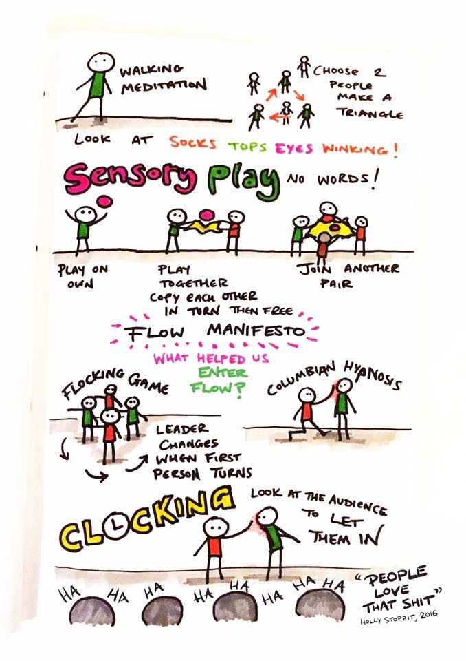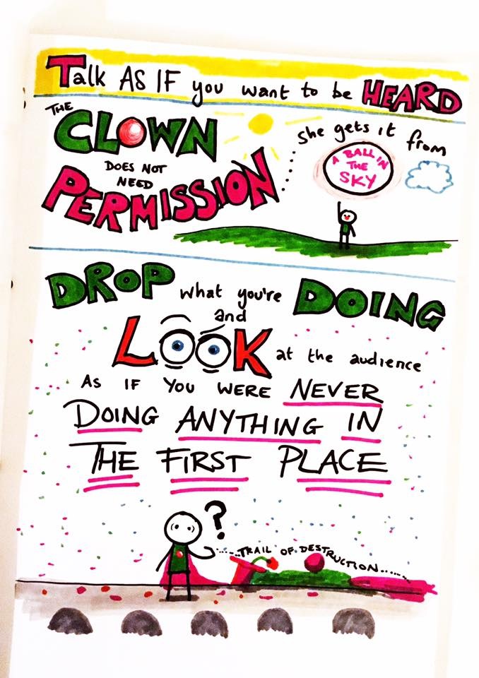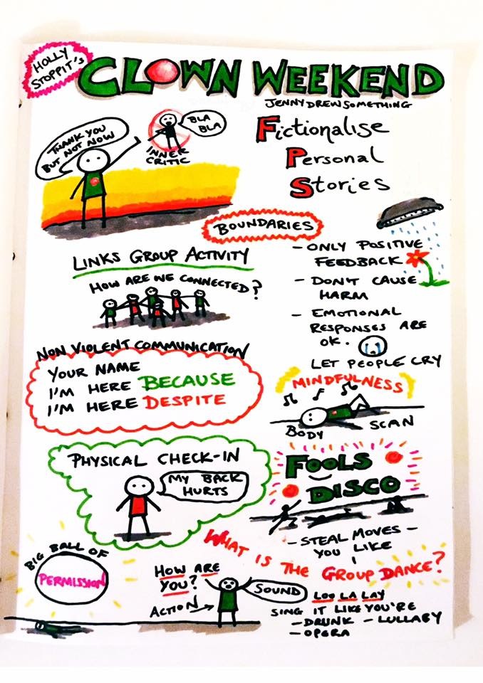 I recently went on a brilliant weekend training called ‘Introduction to Clowning’ with Holly Stoppit in Bristol. It was such a worthwhile weekend of how to enter into ‘flow’, permission to be free, creative play and mindfulness. So much of what I learned could be applied to my doodle workshops. This weekend I’m going on part two – clowning and storytelling ๐